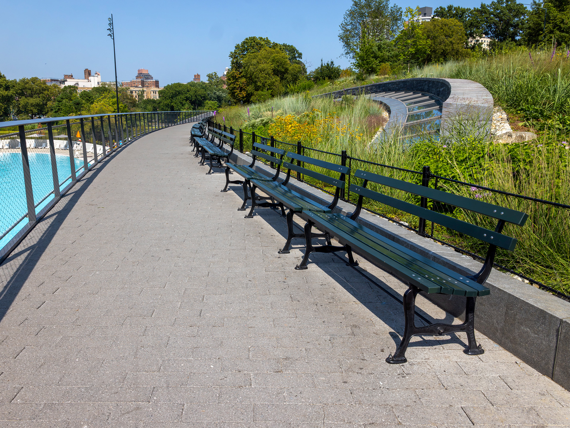 The $160 million Davis Center represents the biggest investment in Central Park’s restoration in recent history, and one of New York’s most significant public projects aimed at serving low-income communities north of Central Park. The project provides a state-of-the-art pool that transforms into a skating rink in winter and synthetic turf lawn in spring and fall. A new support building that flanks the pool is seamlessly built into the adjacent hillside, creating a bold addition to the nation’s most famous public park.